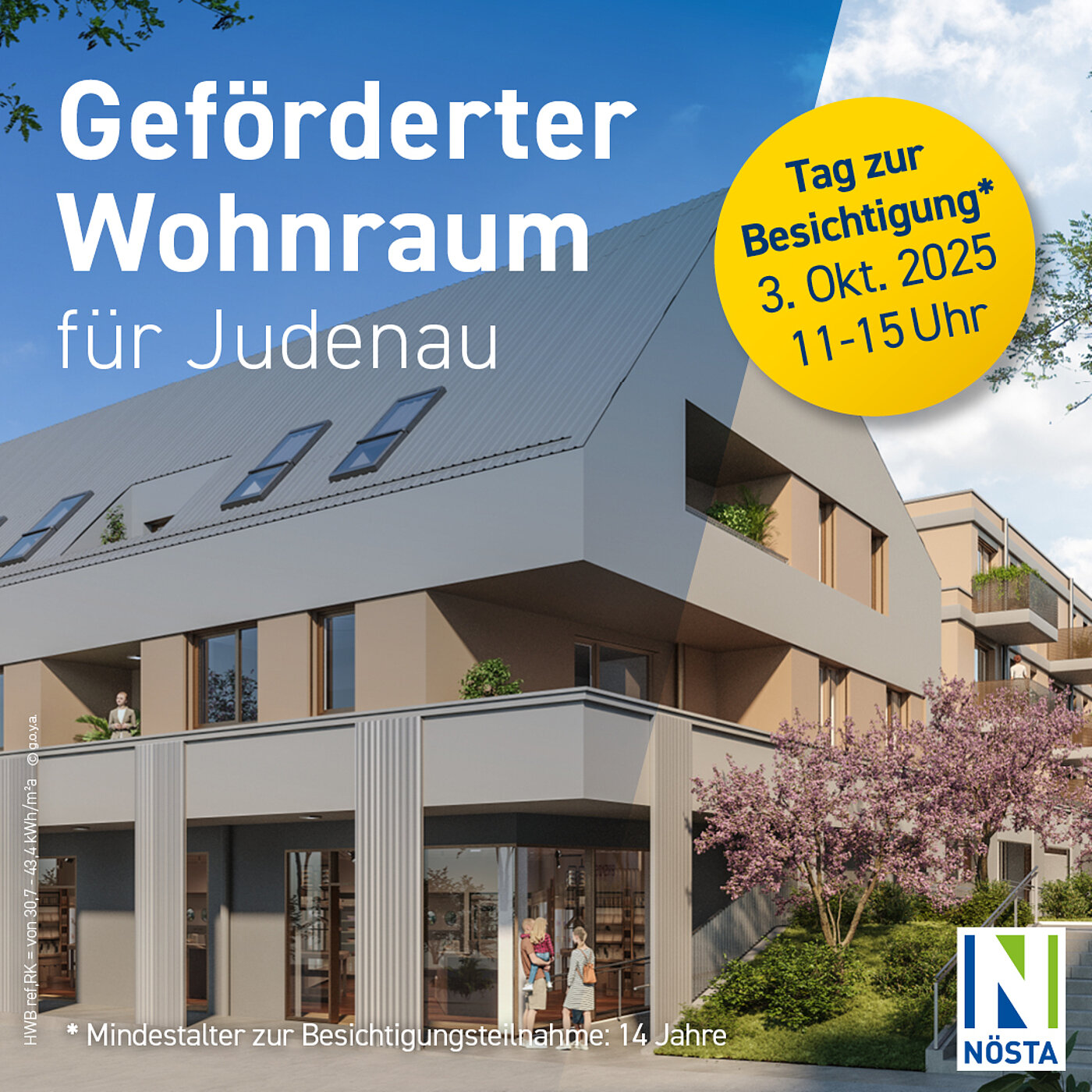 In zentraler Lage, im Florianipark in Judenau, errichtet die gemeinnützige Wohnbaugesellschaft NÖSTA eine Wohnanlage mit 35 Wohnungen und einer Lokalfläche. Die geförderten Wohnungen haben Wohnnutzflächen von ca. 52 – 91 m², verteilt auf 2 – 4 Zimmer. Jeder Wohnung ist auch ein privater Freibereich in Form von Terrasse mit Garten bzw. Balkon/Loggia zugeordnet.